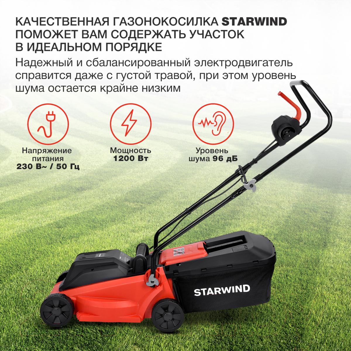 Газонокосилка роторная Starwind ELM-1200 1200Вт