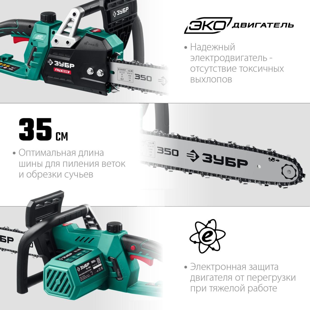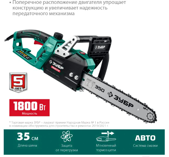 Цепная пила Зубр Мастер ПЦ-1835 от сети 1800Вт дл.шины:14" (35cm) (ПЦ-1835)