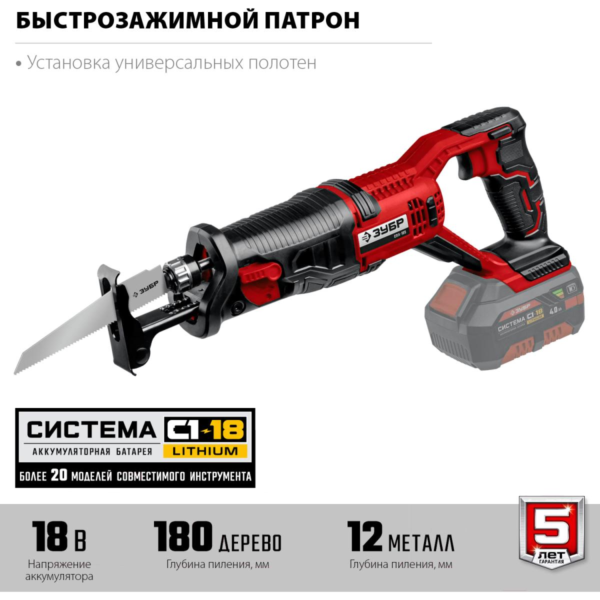 Сабельная пила Зубр СПЛ-185 аккум. 2600ход/мин